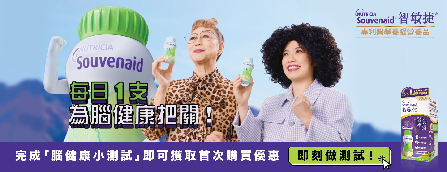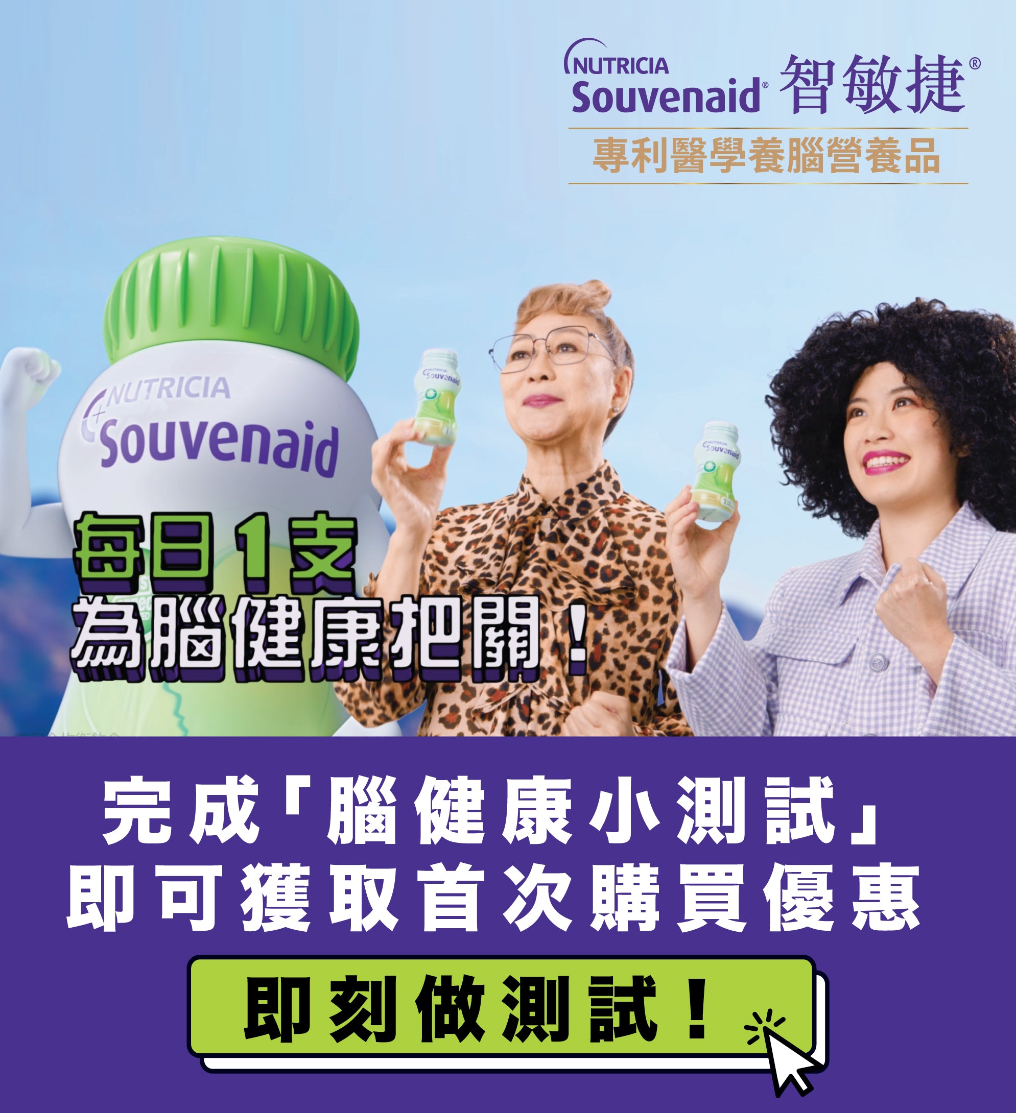 配合有醫學證實嘅營養品,就可以更容易達到養腦營養目標!Souvenaid®智敏捷® 低升糖指數,配合日常飲食安心飲用。 及早開始醫學養腦,更有效改善記憶力及認知能力!
